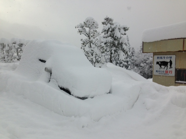 一晩置くと車もこうなります。二晩置き続けていたら、小さな丘になって