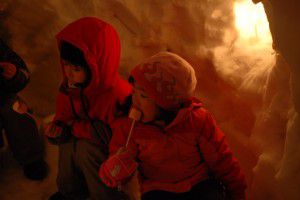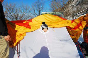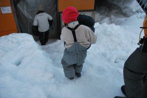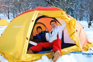 雪中キャンプ泊の子が通気口からこんにちわ!