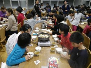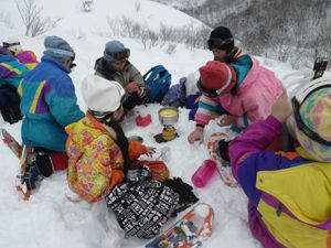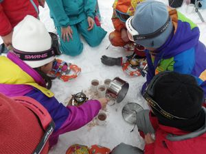 そして、登山家のように自分たちで背負ったガスコンロや鍋、コップなどを使って、みんなが飲む