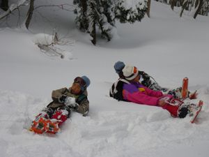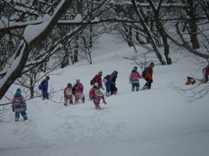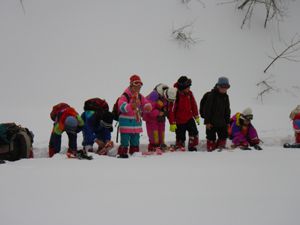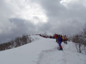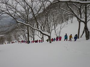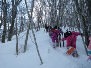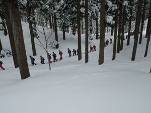 今日はスノーシューを履いて、森に入ります。明日の登山に向けて、スノーシューの履き方に慣れ、