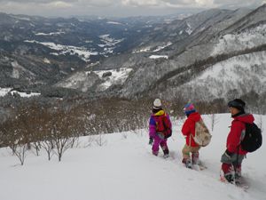 坂を上ったり、下りたり。森の中でもどこでもスノーシューを履けば、雪に埋もれることなく歩き