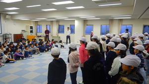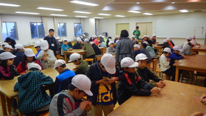 到着後は昼食を食べ、館内めぐりやベッドメイキング、木の名札づくりをし、相手校との対面式が行われました。