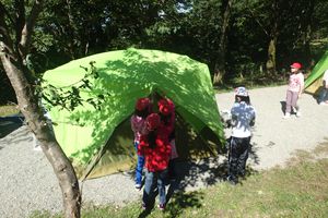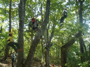 ツリーイングでは普段は見れない木の上からの景色を楽しんでいました!テント設営はみんなの背よりも高いテントをグループで協力してたてました!