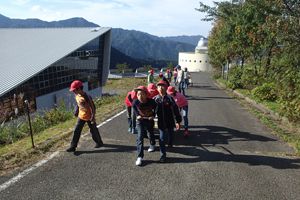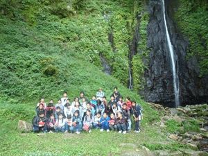 その後は施設の周りをおさんぽです。長さ32メートルもある八反滝をみてみんな歓声をあげていました。