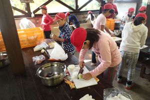 楽しそうにカレーを作っていました。できあがったカレーはみんな残さず食べていました。