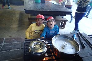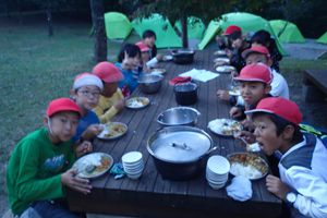 そして今晩は野外炊事です!!飯ごうでご飯を炊いたり、かまどに火をつけたり普段はなかなかできない体験で子ども達も少し戸惑いながらも、先生やリーダーのサポートもあり