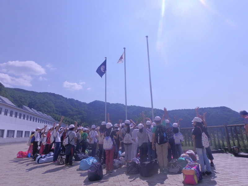好天の続く美方高原にわかば西小学校の5年生が到着しました。強い日差しの中、ときおり気持ちの良い風が通り抜けます。「自分たちでやっていく。」これから彼らの自然学校が始まります。