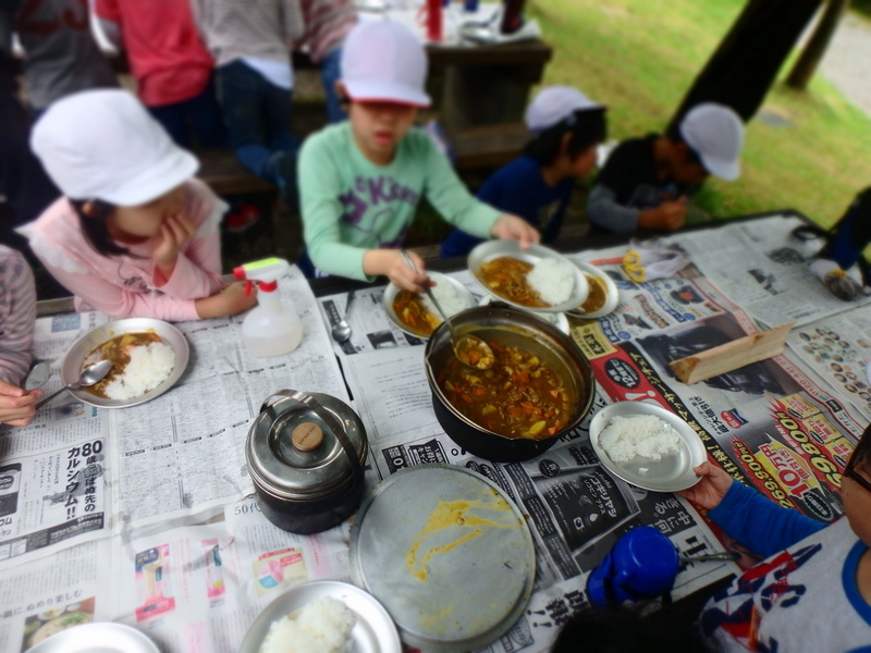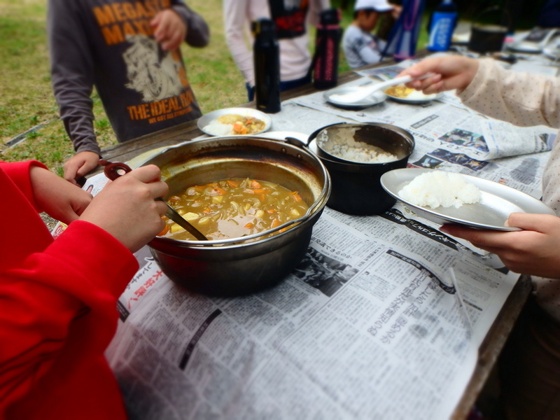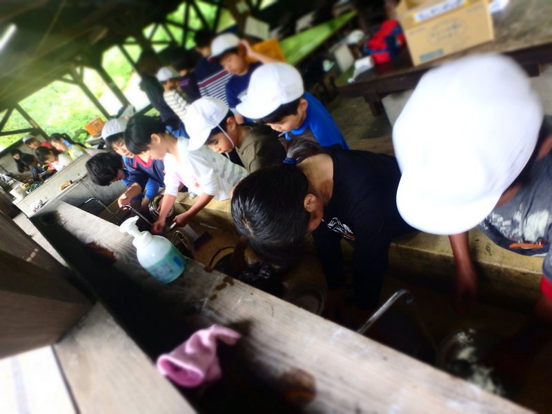 昨夜は強い風雨にさらされた美方高原。天気予報は雨でしたが、運よく野外炊飯時には降られず。食事の合間に走り回ることもできました。夕方からはふるさと生活体験学習へ。