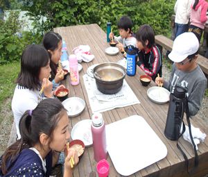 自分達で作って森の中で食べる豚汁は美味しいね!