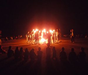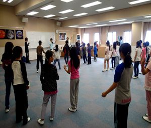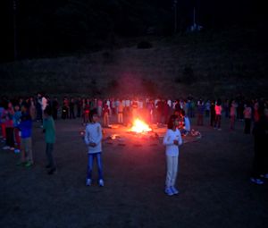 クラスごとでキャンプファイヤーのスタンツ練習です。