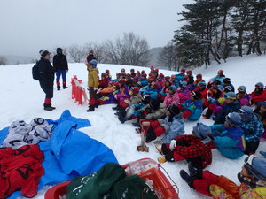 その後開校式をし、スキーウェアを着て雪あそび!!短い時間でしたが、みんなおもいっきり雪を楽しみました。