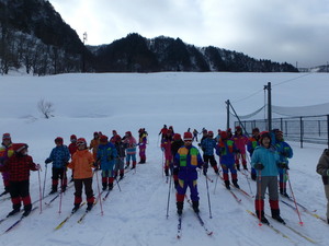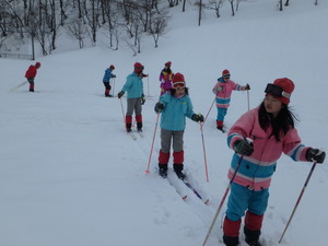 歩くスキーでは、グラウンドを中心にちょっとした坂道を滑ったり、コースを回ったりなどして楽しみました。