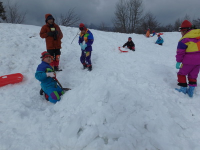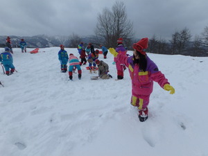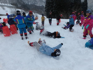 午前中はソリ遊びと雪合戦の練習をし、午後から開会宣言をして、試合がスタート!!