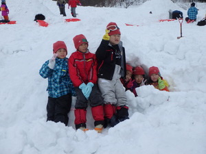 『班のみんなで協力して、班の全員が入れるかまくらをつくろう!!』を目標に