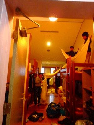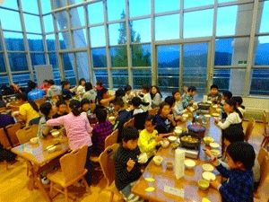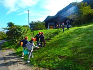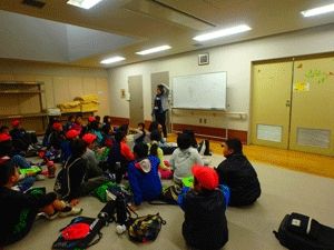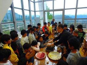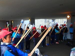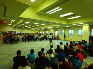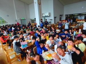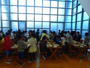 今日から園田小学校の自然学校が始まりました。尼崎に比べて気温がぐっと低い美方高原。到着するなり慌てて上着を出す子がちらほら・・・。お家から持ってきたお弁当を外で食べました。入所式の後に部屋の仲間と協力して布団のシーツしき。そして長洲小学校との対面式で校歌を歌い学校紹介をしました。夜は雲が出てきてしまったので星のお話会に変更になりました。