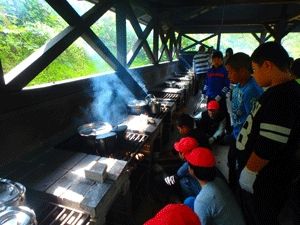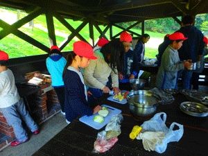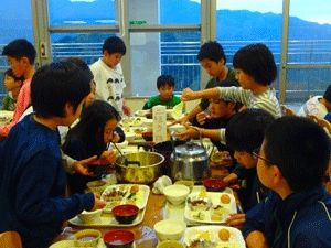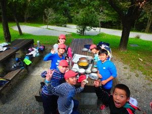 今日の午前中太陽が顔を出しぽかぽかと気持ちのいい天気になりましたが、午後から雲が出始め15時頃から雨が降り出しました。今日は、班でカレー作りに挑戦です。食材も火付けも班の子と協力していきます。火11時半には一番早いグループのカレーが完成しました。どの班も美味しいカレーが出来上がりたくさん食べていました。炊事器材の片付けもみんな綺麗に洗って返却してくれました。夜は予定していた天体観測が雨のため中止となり学級活動に変更になりました。