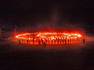 今日も肌寒い日になりました。ときどき太陽が顔を出してくれる時はぽかぽかと暖かくなります。今日は焼き板作りと学級活動。焼き板は説明を聞いた後に班ごとで作っていきます。お土産になるものがたくさん完成しました。夜はキャンプファイヤー。1人1本トーチ棒を持ちます。153名が持つととても壮大でした。明日、園田小学校5年生は一回りも成長して帰ります。