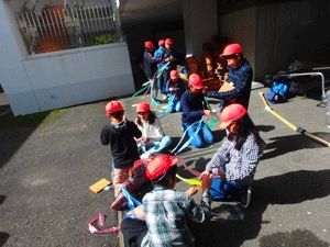 班で協力してドリルで穴をあけました。苦戦したかな??
