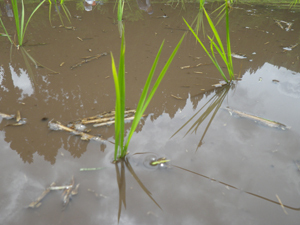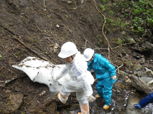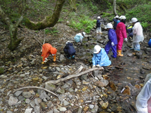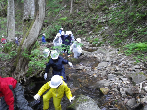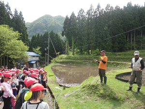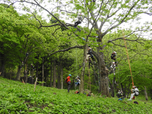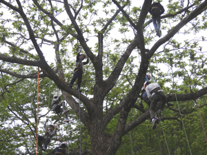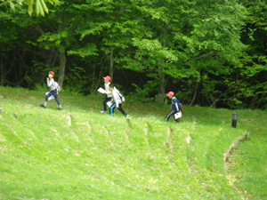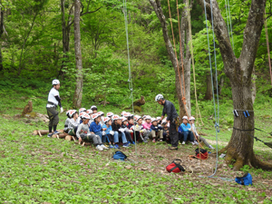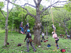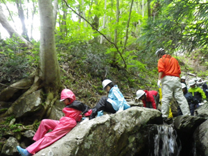 今日も快晴、朝から気持ちの良い天気です。午前中はみんなでどろんこになって田植え。午後は沢登り、ツリーイング、オリエンテーリングと各クラスごとに活動しました。