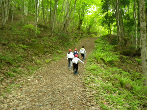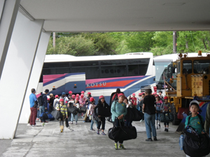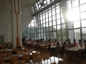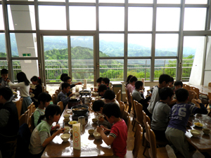 新緑のまぶしい美方高原に上坂部小学校5年生の皆さん96人が元気にやってきました。今日から5日間、元気に楽しく、たくさん学んでいってください。